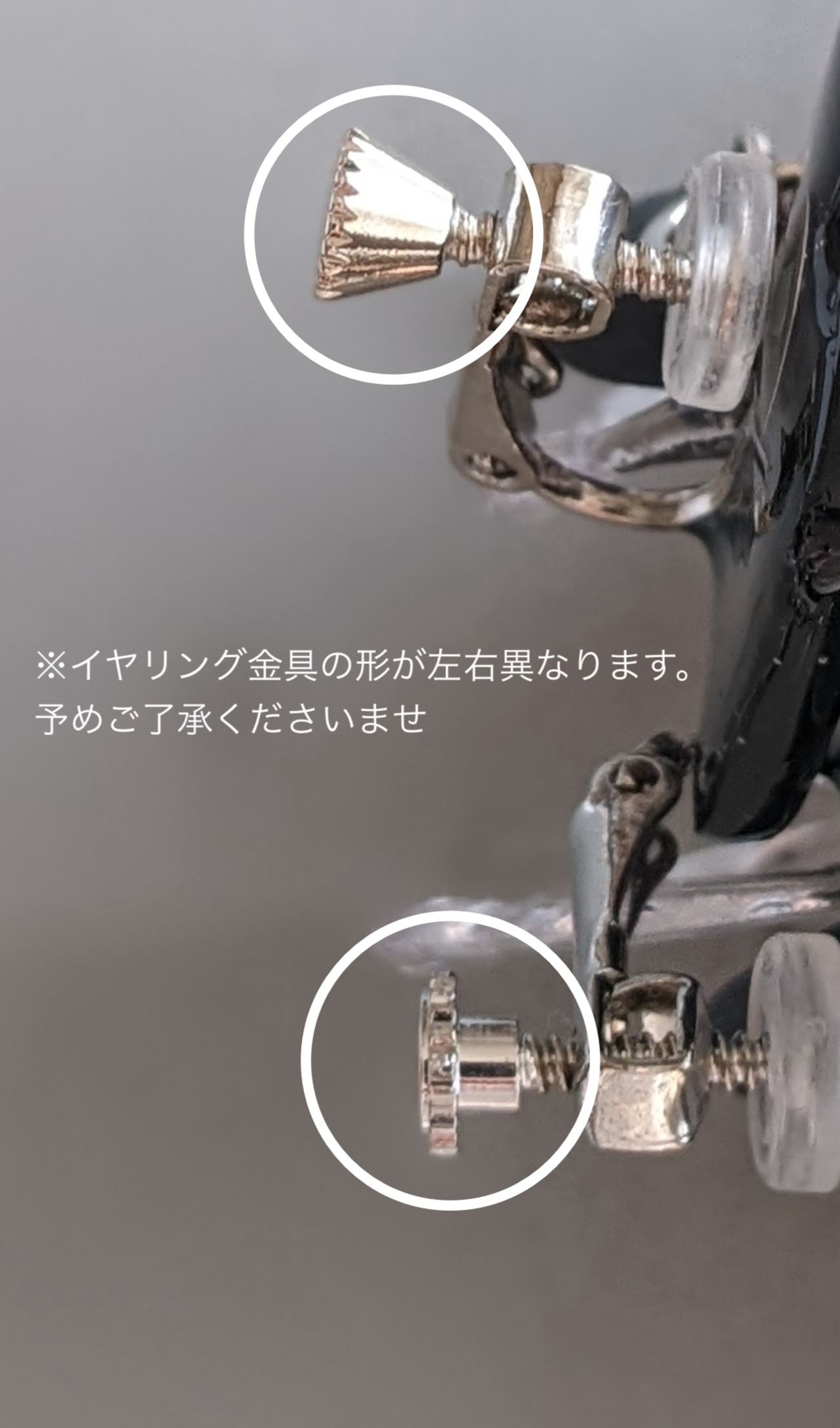 ※イヤリング金具の形が左右異なるため