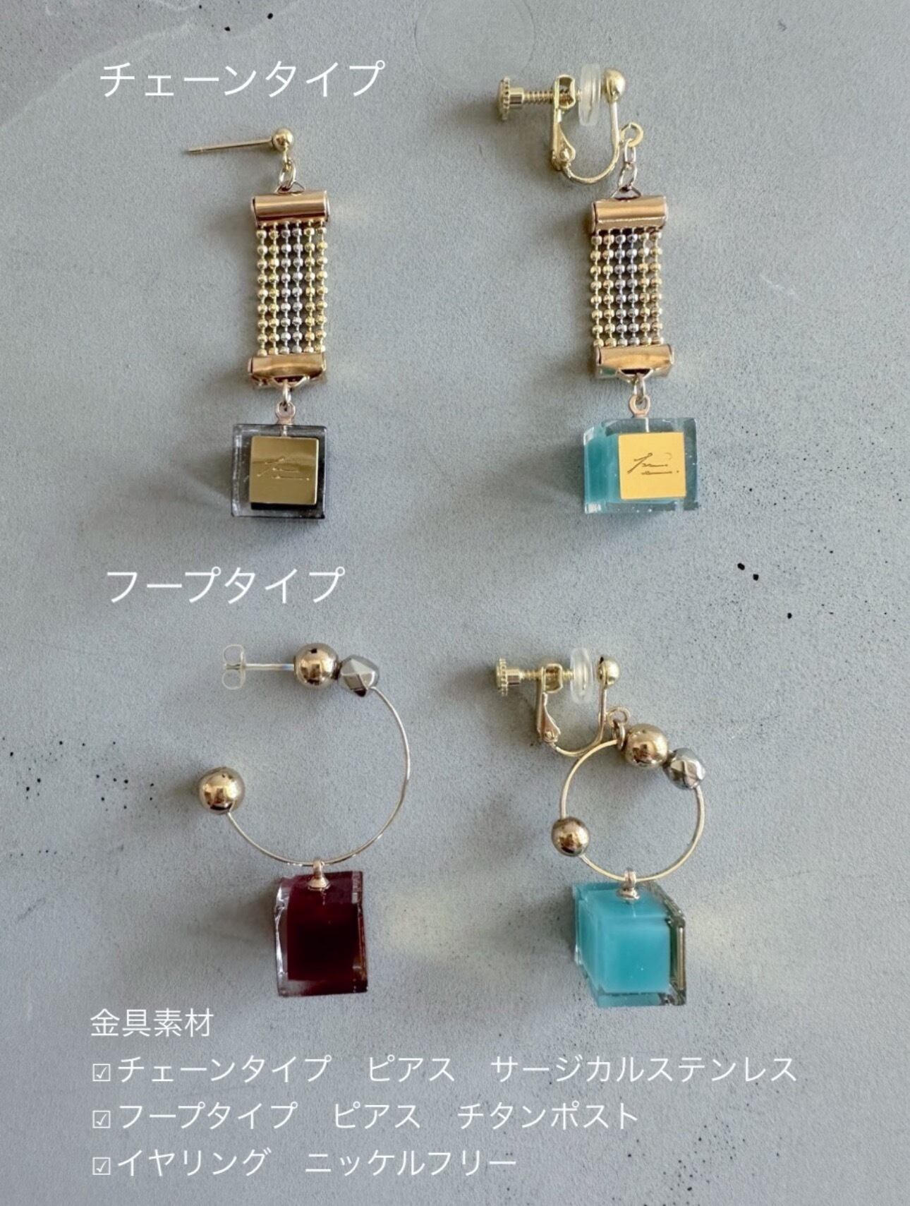 ※チェーンタイプのピアスはサージカルステンレス、フープタイプのピアスはチタンポストとなります
