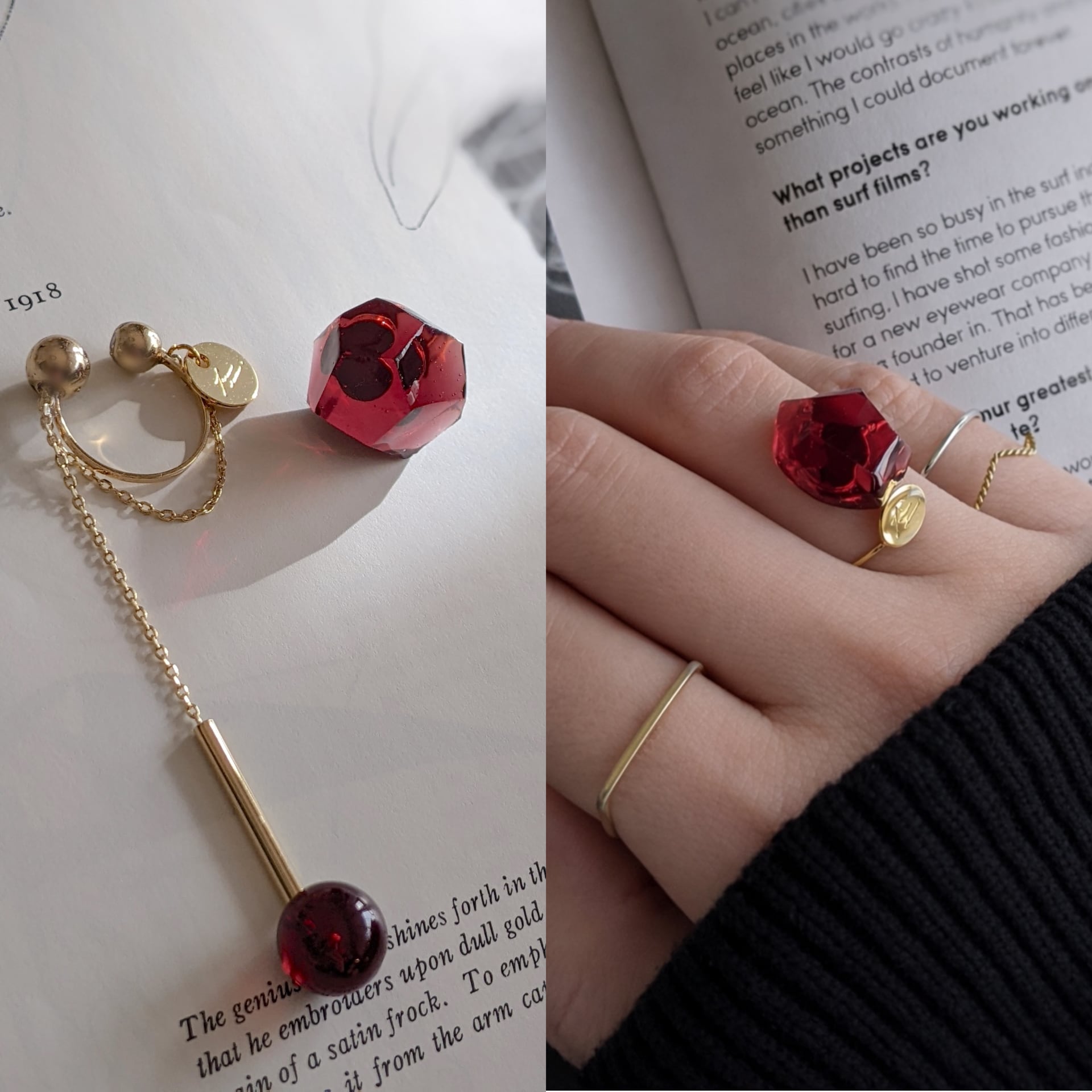 GENSEKI【birth】耳飾りとリングのセットです