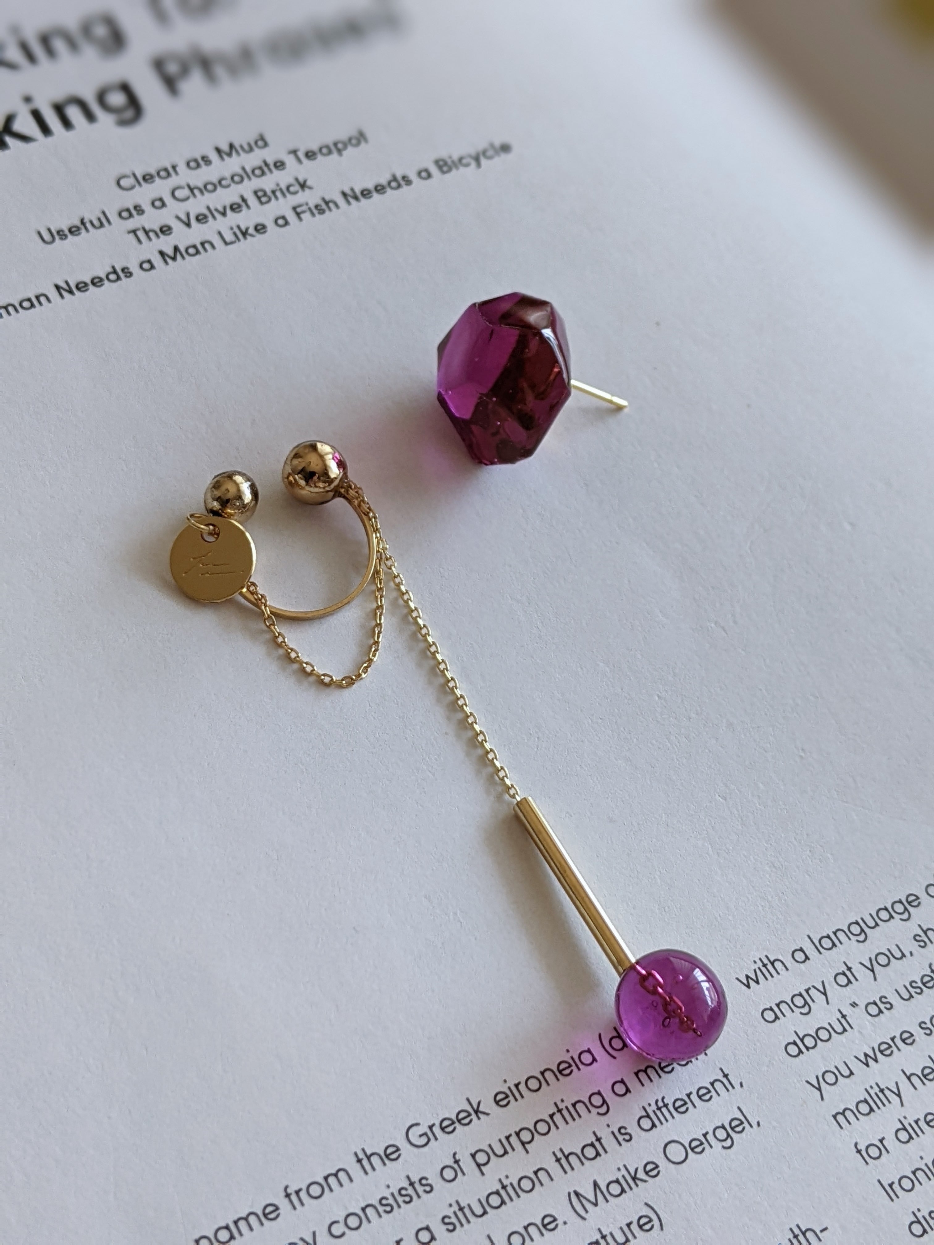 アシンメトリーデザインがかわいい耳飾りと